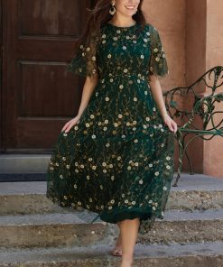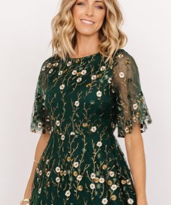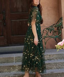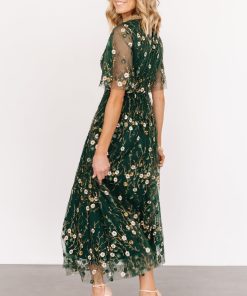 Baltic Born Women’s Dresses Arabella Embroidered Tulle Maxi Dress | Dark Green Floral