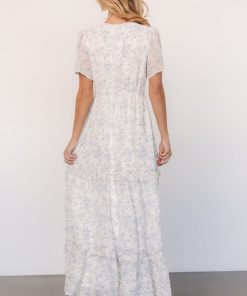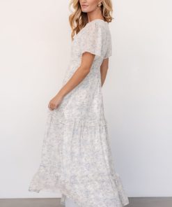 Baltic Born Women’s Dresses Audrey Deep V Maxi Dress | Off White + Blue Floral