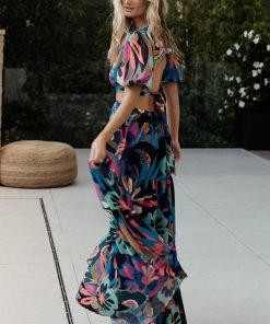 Baltic Born Women’s Dresses Bastina Open Back Maxi Dress | Black Print