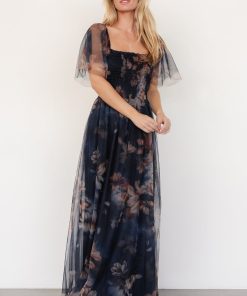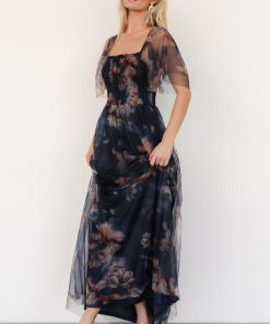 Baltic Born Women’s Dresses Cassandra Tulle Maxi Dress | Dark Blue Floral