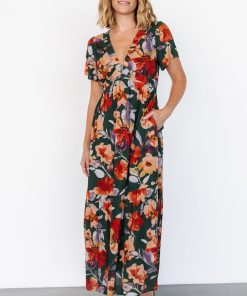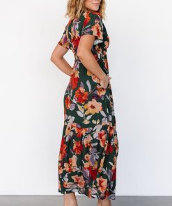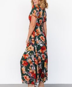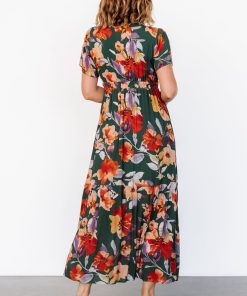 Baltic Born Women’s Dresses Cassie Short Sleeve Dress | Dark Green Floral
