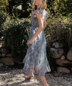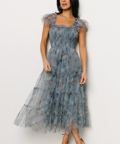 Baltic Born Women’s Dresses Clementine Tulle Midi Dress | Dusty Blue Floral
