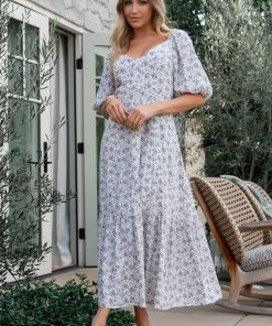 Baltic Born Women’s Dresses Elisabeth Button Dress | Off White + Blue Floral