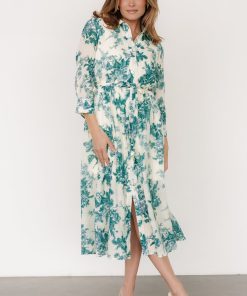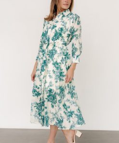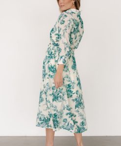 Baltic Born Women’s Dresses Eunice Button Midi Dress | Cream + Green Floral