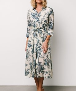 Baltic Born Women’s Dresses Eunice Button Midi Dress | Ivory + Blue Floral