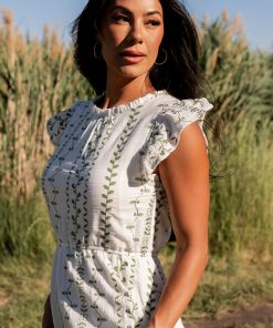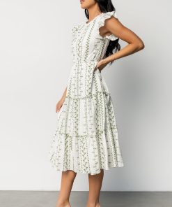 Baltic Born Women’s Dresses Frida Embroidered Midi Dress | White + Green Print