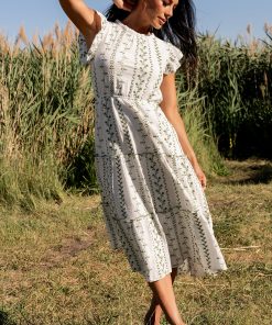 Baltic Born Women’s Dresses Frida Embroidered Midi Dress | White + Green Print