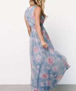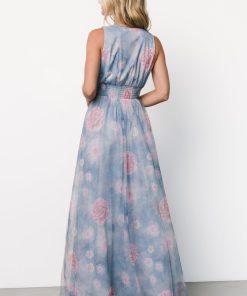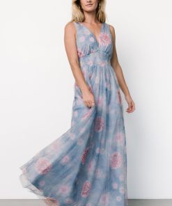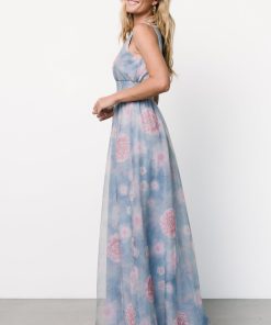 Baltic Born Women’s Dresses Kamila Tulle Maxi Dress | Light Blue + Pink Floral