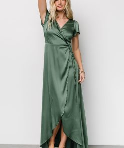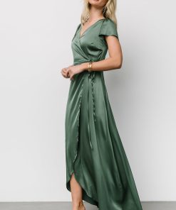 Baltic Born Women’s Dresses Krystal Satin Wrap Gown | Winter Green