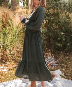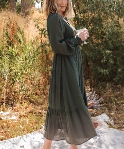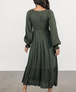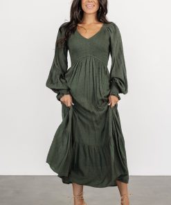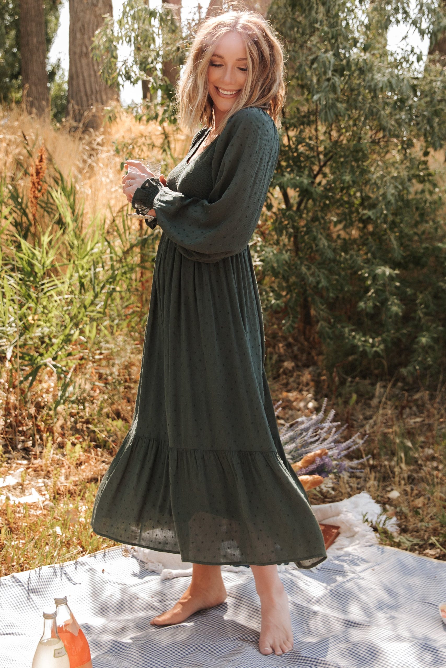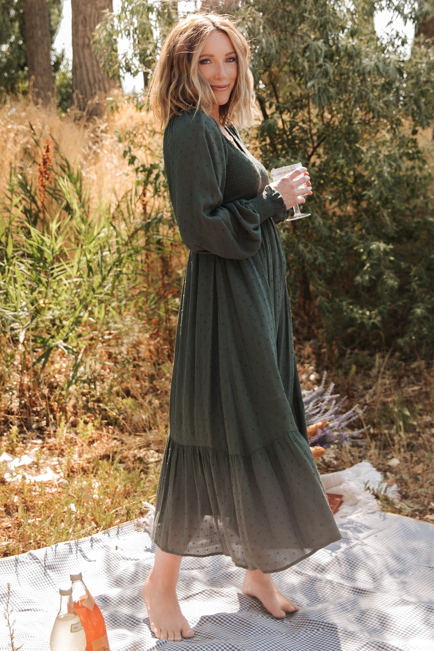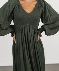 Baltic Born Women’s Dresses Lainey Smocked Dotted Midi Dress | Deep Olive