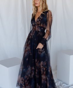 Baltic Born Women’s Dresses Layla Tulle Maxi Dress | Dark Blue Floral