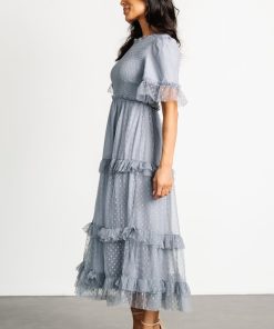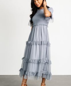 Baltic Born Women’s Dresses Lysandra Smocked Dot Dress | Dusty Slate