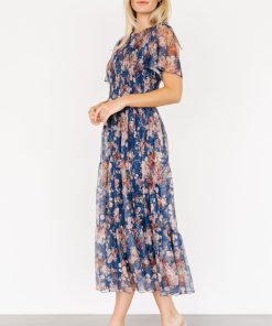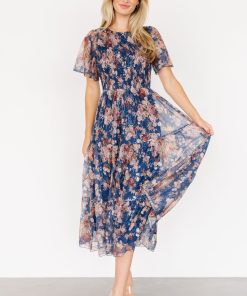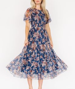 Baltic Born Women’s Dresses Mara Embroidered Tulle Dress | Dark Blue Multi Floral