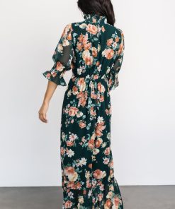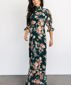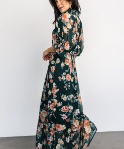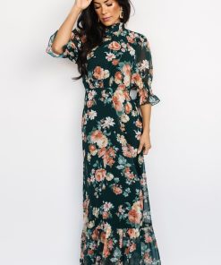 Baltic Born Women’s Dresses Marie Mock Neck Maxi Dress | Dark Green Floral