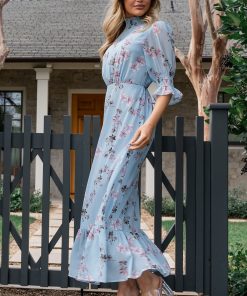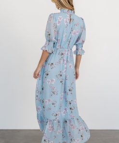 Baltic Born Women’s Dresses Marie Mock Neck Maxi Dress | Sky Blue Floral
