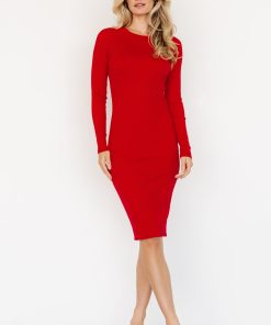 Baltic Born Women’s Dresses Mavis Ribbed Midi Dress | Red