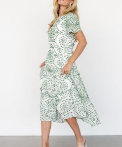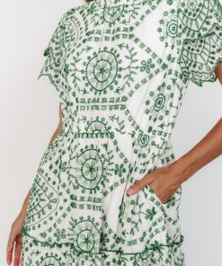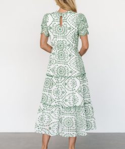 Baltic Born Women’s Dresses Mirabel Eyelet Midi Dress | White + Green