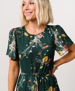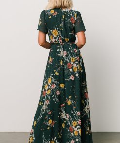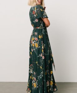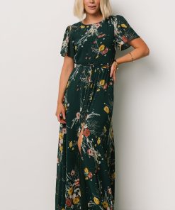 Baltic Born Women’s Dresses Naomi Short Sleeve Maxi Dress | Dark Green Floral