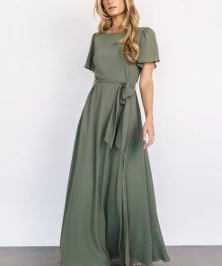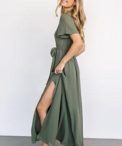 Baltic Born Women’s Dresses Naomi Short Sleeve Maxi Dress | Dark Sage
