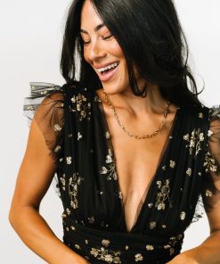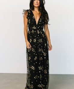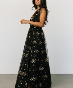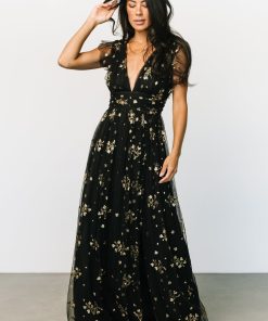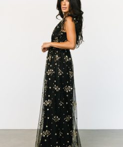 Baltic Born Women’s Dresses Natalia Floral Embellished Maxi Dress | Black + Gold