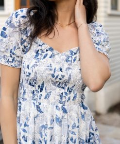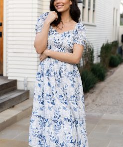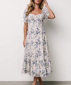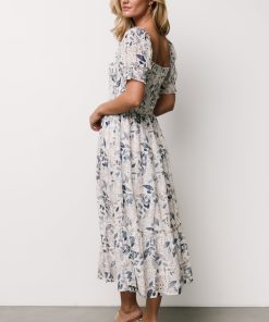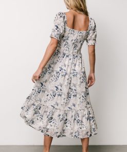 Baltic Born Women’s Dresses Piper Eyelet Midi Dress | Off White + Blue Floral
