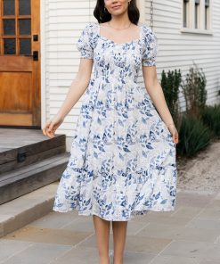 Baltic Born Women’s Dresses Piper Eyelet Midi Dress | Off White + Blue Floral