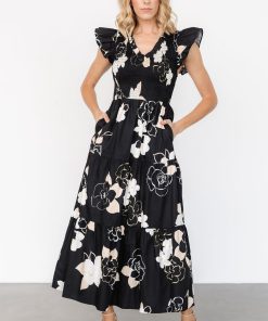 Baltic Born Women’s Dresses Ranchero Smocked Maxi Dress | Black Print