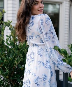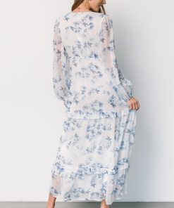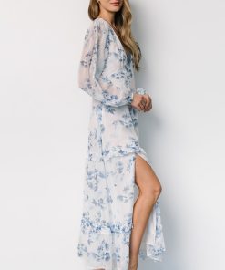 Baltic Born Women’s Dresses Rumi Deep V Maxi Dress | Off White + Blue Floral