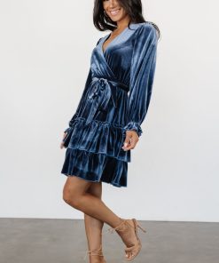 Baltic Born Women’s Dresses Shannon Velvet Short Dress | Slate Blue